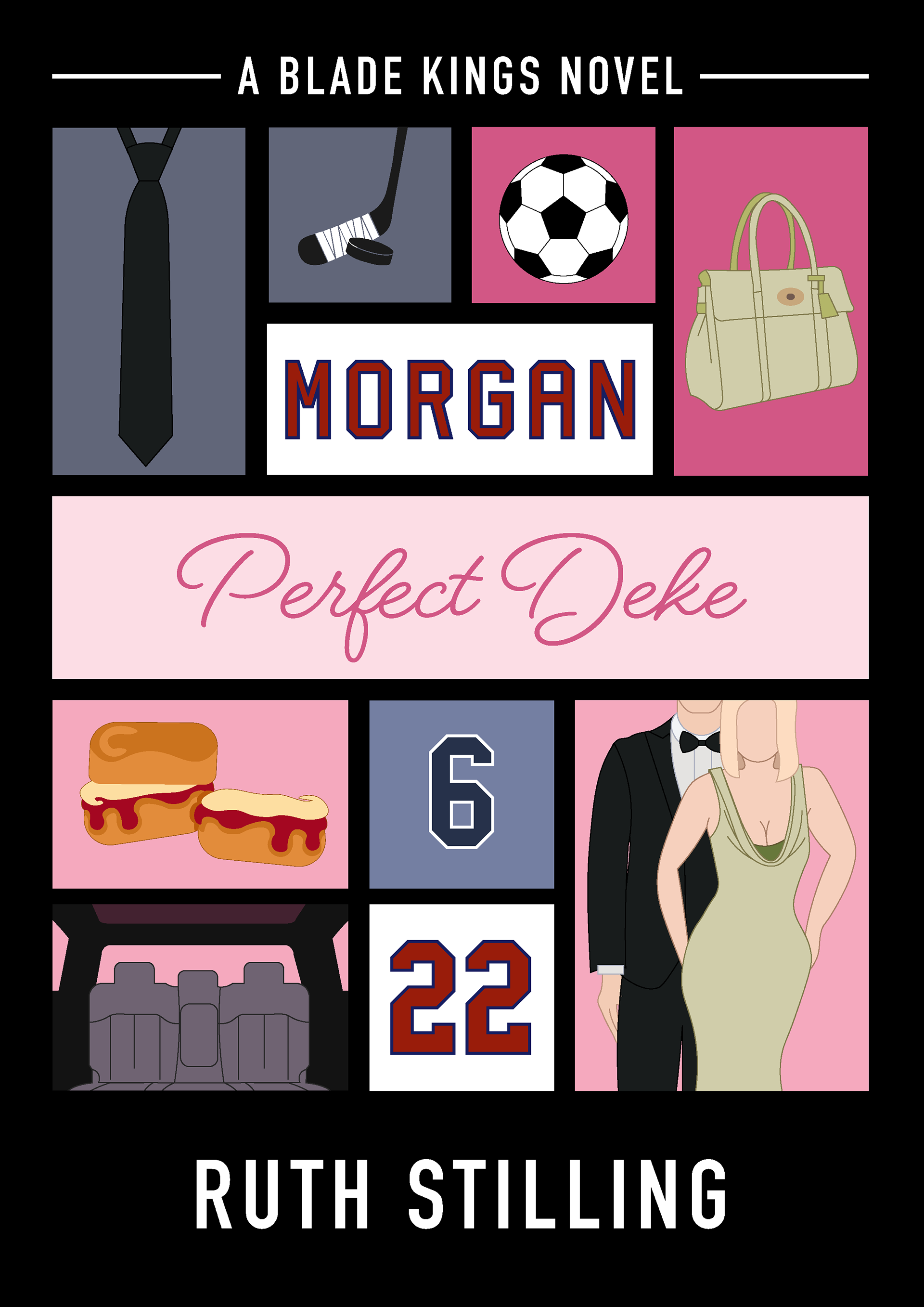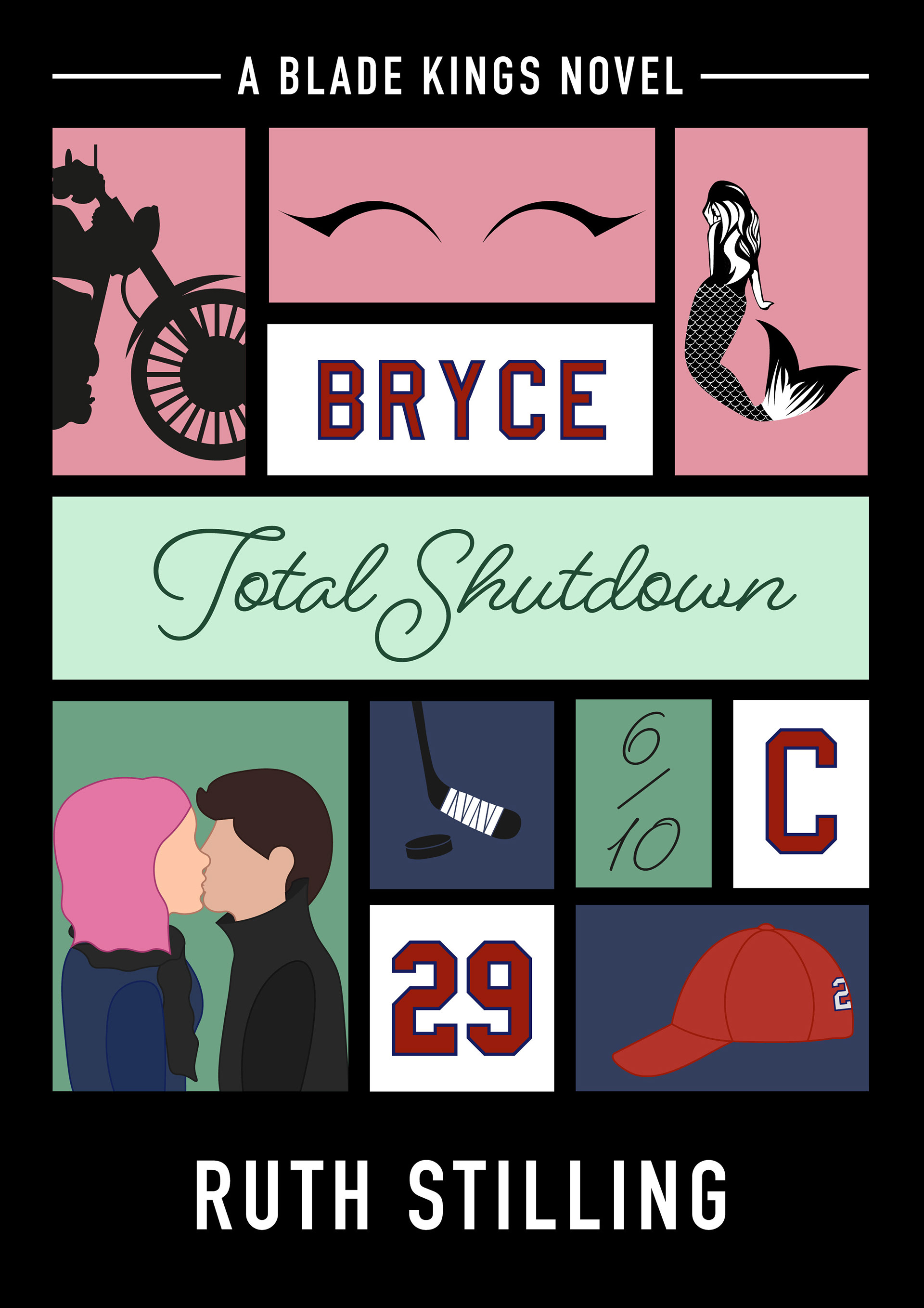 The Blade Kings - Ruth Stilling's second series in Hockey Romance, following from the Seattle Scorpions series. These covers were individually designed and created with a consistent but different block layout incorporating vector style illustrations as key elements from each book including key scenes and characters moments, including the original colour scheme and similar font from the original covers. This time using a black background to allow similarities throughout both series whilst keeping them separate.